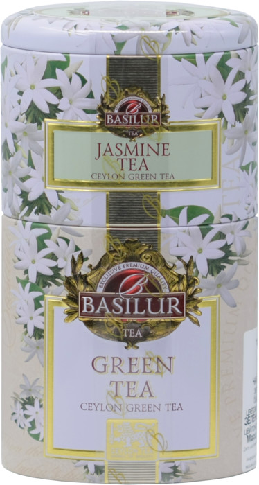 Чай зеленый цейлонский байховый листовой с натуральными растительными добавками.Верхняя часть содержит композицию цейлонского чая с добавками: цветы жасмина. Нижняя — натуральный зеленый цейлонский чай без добавок.Произведено и упаковано на Шри-Ланке.