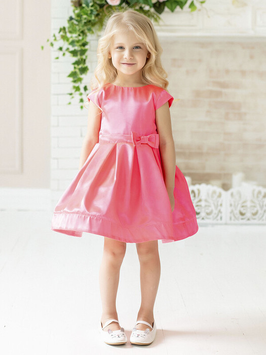 Нарядное розовое платье с пышной юбкой из сатина. Короткий рукав, спереди бант. Подкладка 100% хлопок. Характеристики:Размеры (рост): 98-134Ткань верха: Сатин - Полиэстер Сетка - ПолиэстерПодкладка 100% хлопокПроизводитель: batik