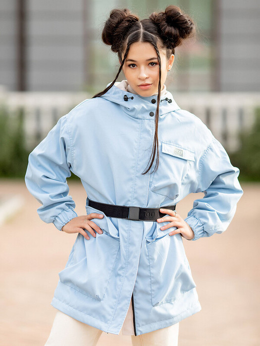 Парка-ветровка для девочки Валенсия в нежной голубой расцветке. Стильная парка без утеплителя фасона оверсайз с приспущенной линией проймы. Центральная застёжка на молнию с внешней ветрозащитной планкой. Низ рукавов на эластичной резинке. Спереди два накладных кармана с листочкой.   Особенности:  Регулируемый втачной капюшонВоротник на кнопкахОбъёмные накладные карманы с клапаном на магнитеУтяжка талии эластичным ремнем на магнитной пряжкеНаклонный объёмный карман на левой полочкеОтлетная кокетка по спинкеУтяжка низаСветоотражающие термотрансферы Характеристики:Ткань верха: курточная ткань, хлопок с водоотталкивающей пропиткой Подклад: хлопокУтеплитель: нет Температурный режим от +8 (с поддевой) до +15 С (без поддевы)Производитель: batik