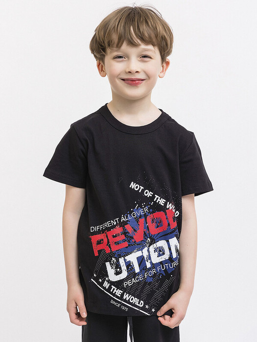 Футболка с коротким рукавом для мальчика из натурального хлопка. Классическая черная расцветка и принт с надписями. Круглый вырез горловины – удобная посадка, не натирает шею. Футболка идеальна для садика, прогулок и активных игр. Легко комбинируется с любой детской одеждой: брюками, шортами, джинсами.Характеристики:Ткань: 100% хлопокПроизводитель: batik