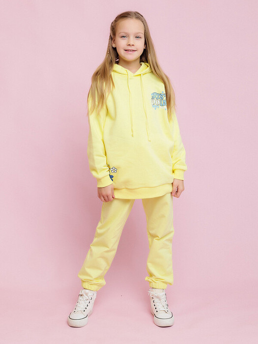 Худи для девочки из футера желтое с капюшоном. Свободное удлиненное худи оверсайз силуэта со спущенной линией рукава, на манжете с внутренней широкой резинкой. Капюшон с утяжкой в виде шнурка с обработкой концов. Точечный принт с надписями и цветочками.Характеристики:Ткань: Футер 3х нитка 90% хлопок 10% полиэстерПроизводитель: batik
