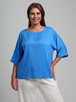 Необычная удлиненная блузка строго силуэта. Рельефные швы от горловины, неровная линия низа, широкие подгибки и планка, выделяют эту блузку из всех других