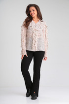 Шифотновая блузка с нижним слоем тонкого трикотажа. Рукавчики выкроены уголочками,по низу идет трикотажная планочка, которую можно по желанию либо опускать, либо прятать вверх.