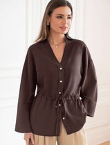 14.04 Vilatte Свободная блузка с кулиской на талии изо льна с вискозой D29.345 к