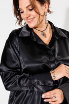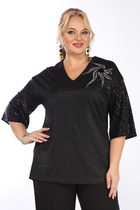 Блузка женская свободного силуэта. В горловине переда блузки расположены мягкие симметричные складки. По центру переда расположена декоративная капелька. Спинка со средним швом, в котором находится застежка на навесную петлю. Горловина обработана отложным воротником-стойкой. Рукав прямой, длинный, одношовный. Низ рукава со сборкой и манжетой с застежкой на одну петлю-пуговицу. На фото с блузой представлены брюки М-478   Длина блузы по спинке 63 см