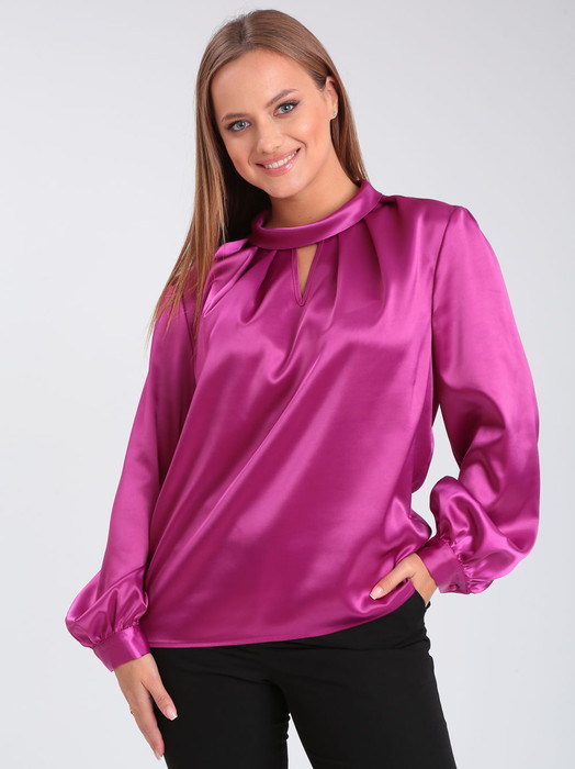Яркая женская блузка из гладкой однотонной ткани с атласной структурой украсит вас на любом праздничном или официальном мероприятии. Такая блузка будет прекрасно сочетаться со строгими брюками и юбкой любого фасона.