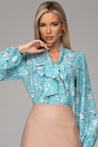 Блузка укороченная, выполнена из хлопкового полотна нежно-розового цвета. Характеристики: воротник рубашечного типа, застежка на пуговицы, по переду функциональные накладные карманы, низ присборен на резинку. Длина по спинке 43 см.