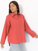 Блузка женская свободного силуэта из атласной ткани. Вырез горловины оформлен воротником пиджачного типа с застежкой на петли с пуговицами. Рукава- отрезные на базе цельнокроеных с отрезными манжетами с разрезами. В боковых швах выполнены разрезы. Передняя половинка декорирована настрочным декоративным элементом.