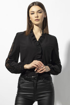 Белоснежная блуза прямого силуэта из хлопковой ткани, позволит создать вам необходимый легкий образ, комфорт и удобство. По центру полочки застежка в виде планки на петли и пуговицы. Вырез горловины V-образной формы, фигурный. Рукав втачной, в исполнении «фонарик», благородно выглядит в тканях, которая держит форму.