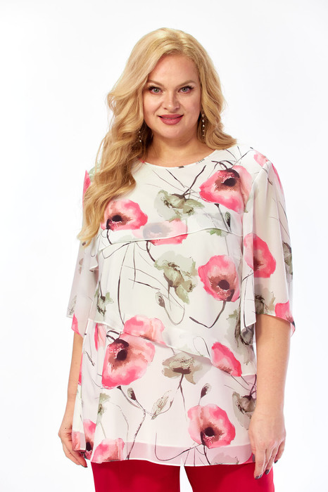 Совместные покупки Тюмень Женская одежда Блузки, рубашки — Блуза Элль стиль 2465а белый, красные маки