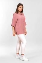 Блузка женская нарядно повседневного элегантного стиля, прямого силуэта с фигурным низом выполнена из шикарного дышащего хлопка. Вырез горловины воротник на стойке рубашечного типа, застежка доверху на обметанные петли и пуговицы. Рукав спущенный, втачной по низу на притачной манжете, в боковых швах обработаны разрезы. На полочке функциональный накладной карман, изящная металлическая бренд лейбл и контрасные пуговицы придают изделию стильный и современный дизайн. Подрез по полочке делает изделие трендом сезона. По спинке фигурная кокетка и встречная складка, создают идеальную посадку. Универсальный силуэт, элегантный крой, стильный дизайн - все детали только подчеркивают достоинства фигуры, а фасон создает трендовый образ.