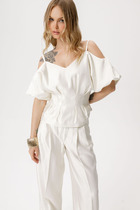 Туника выполнена из текстильной ткани вуаль "Аурора". Накидка свободного покроя, без застежки, край борта обработан бейкой, рукава втачные одношовные, низ рукава присобран на венгерку, по окату рукава легкая сборка. Низ изделия и низ рукавов обметан улиткой и застрочен на 0,2 мм.