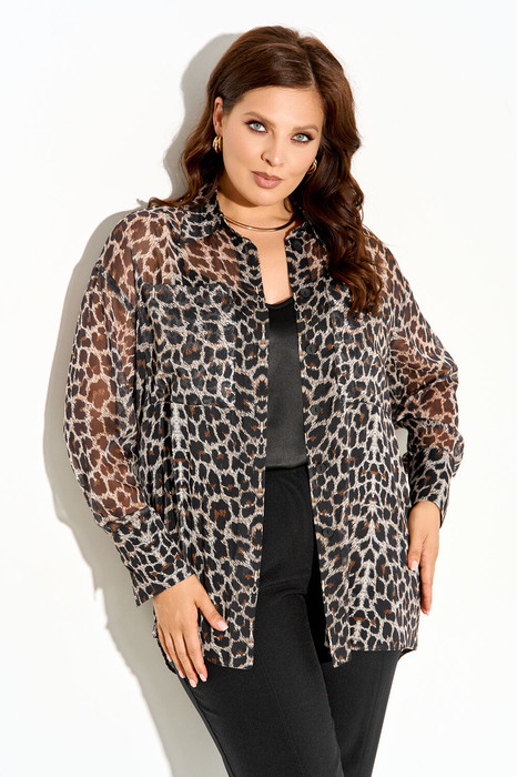 Женская рубашка-накидка свободного силуэта выполнена из легкого просвечивающегося шифона. Рукава со спущенной линией плеча на манжетах, по переду накладные карманы, застежка на петли и пуговицы. Рубашка соответствует заявленному размеру. Пользуйтесь, пожалуйста, таблицей измерений готового изделия.