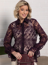 Позвольте себе окунуться в мир утонченной элегантности с нашей великолепной фиолетовой блузкой из кружевной ткани. Это не просто предмет одежды, а настоящее произведение искусства, созданное для того, чтобы подчеркнуть вашу женственность и неповторимый стиль. Погружение в роскошь: Цвет, пленяющий взгляд: Глубокий, насыщенный фиолетовый оттенок этой блузки придает ей особую магию. Он ассоциируется с роскошью, таинственностью и изысканностью, мгновенно привлекая внимание и создавая незабываемый образ. Нежность кружева: Искусно выполненное кружево становится главным украшением блузки. Его тонкие узоры, словно паутинка, создают завораживающий эффект, добавляя образу легкости, воздушности и чувственности. Выбирайте между классическими цветочными мотивами или более современными геометрическими узорами – каждая деталь продумана до мелочей.