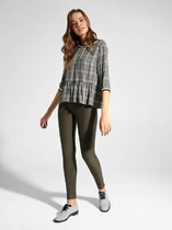 Блузка женская прямого силуэта на центральной застежке на петли и пуговицы. Перед с нагрудными вытачками от боковых швов. Спинка цельнокроеная. Рукав втачной одношовный длинный по низу со сборкой и на манжете, застегивающемся на петлю и пуговицу. Горловина на стойке с воротником.