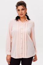 В декоративных целях на левом боку переда размещен настрочный цветочный элемент из сетки, который придает блузке особый шарм и уникальность.