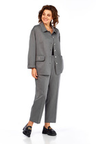 Удобная повседневная блузка свободного силуэта выполнена из плотной эластичной ткани в рубчик. Блузка с отрезной нижней частью по переду и спинке. Верхняя часть переда и спинки целая. По шву притачивания верхней и нижней частей блузки отлетные разно-уровневые отделочные детали. Горловина переда и спинки с втачным воротником стойкой. Блузка с удлиненной линией плеча и свободной заниженной проймой. Рукав со вставкой, втачной длинный с притачными манжетами по низу. Длина рукава от горловины в 50 р-ре – 69 см. в 64 р-ре – 75 см. Ширина рукава по низу в 50 р-ре – 20 см. в 64 р-ре – 22 см. Вставки рукава и нижняя часть блузки выполнена из ткани отделочного цвета. Воротник стойка и манжеты выполнены из ткани рибана. Блузка без подклада и застежек. Длина изделия по спинке в 50 р-ре – 65 см. в 64 р-ре – 74 см.