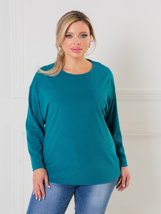 Уютный повседневный джемпер свободного силуэта, выполнен из эластичного трикотажного полотна лапша. Перед и спинка целые. Овальный вырез горловины переда и горловина спинки обработаны обтачками. Джемпер с удлиненной линией плеча и свободной проймой. Рукав втачной, длинный, зауженный к низу. Длина рукава от горловины в 48 р-ре – 65 см. в 64 р-ре – 69 см., ширина рукава по низу в 48 р-ре – 18 см. в 64 р-ре – 24 см. Джемпер без застежек и подклада. Длина изделия по спинке в 48 р-ре – 65 см. в 64 р-ре – 74 см.