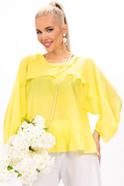 Блузка из хлопковой ткани свободного силуэта. Рукав реглан, длинный, широкий, длина регулируется интересной кулиской с завязками, низ обработан бейкой. Горловина блузки обработана широкой бейкой, переходящей в декоративные детали, которые можно завязать. В верхней части по пореду заложена сборка. Низ блузки фигурной формы.