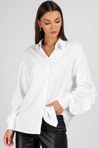 Модель прямого силуэта, на подкладе, без застёжки. Перед с рельефами и средним швом. Блузка декорирована воланами.