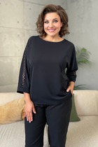 Блузка полуприлегающего силуэта с американской проймой, горловина  обработана стойкой. Топ выполнен из эластичного трикотажного полотна «лапша».