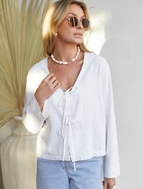 14.04 Vilatte Укороченная свободная блузка с завязками и с V-вырезом изо льна с