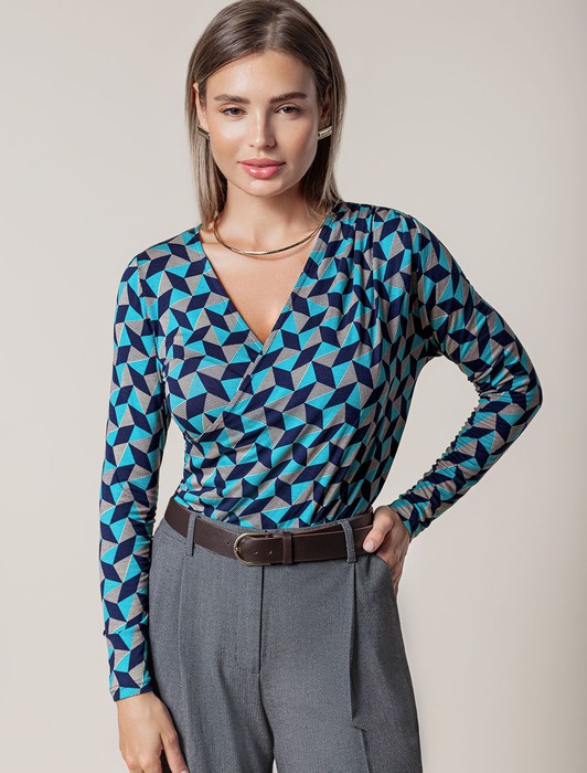 Состав: 95%Вис 5%ПУ Параметры модели на первом фото: Рост 170, бюст 89, талия 63, бедра 92Блузка на запАх сшита из трикотажной вискозы с эластаном. Ассиметричный крой и геометрический принт, подчеркнут сборкой на левом плече. Мягкое полотно как вторая кожа, безупречно ложится по фигуре. Подчеркивает достоинства и скрывает неровности.
