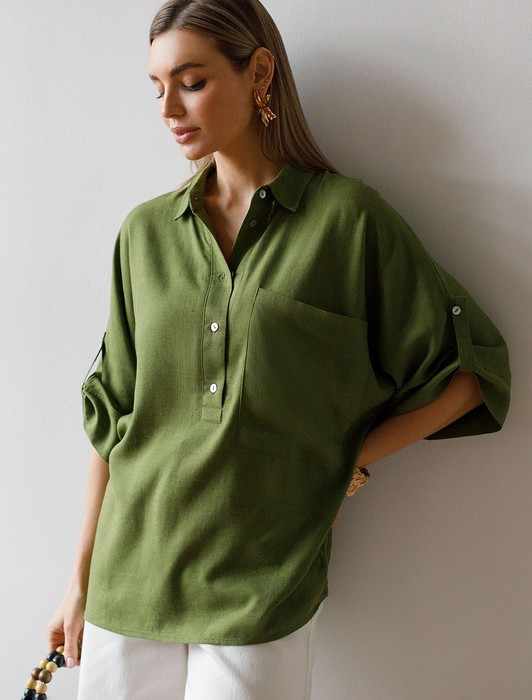 Блузка с цельнокроеным рукавом изо льна с вискозой