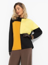 Блуза (рубашка) женская из тканого синтетического полотна с набивным рисунком, свободного покроя, с V- образным вырезом горловины, короткими втачными рукавами, центральной бортовой застежкой на обметанные петли и пуговицы. В боковых швах разрезы, по низу рукавов манжеты, горловина обработана обтачкой.