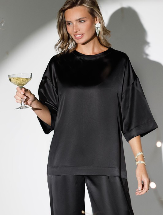 Блузка свободная из струящегося плотного сатина