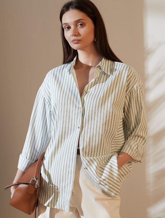 Блузка свободного силуэта в тонкую полоску из эластичного хлопка