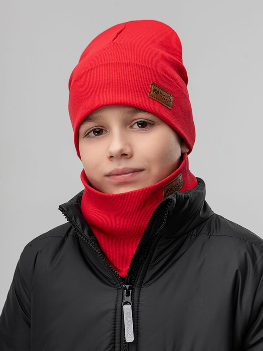Совместные покупки Тюмень Детские аксессуары Шапки — Bodo Комплект (шапка, снуд) с кожзам нашивкой 13-201MU красный