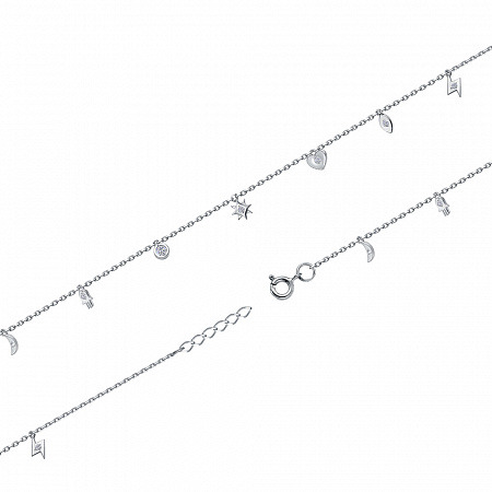 Браслет с фианитом родированный серебро 925*