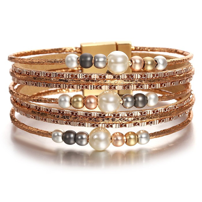 Браслет, арт.656955 , р. 18, 0 гр., жемчуг swarovski , кожа , сталь