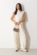 Брюки прямого кроя, по переду на брючинах стрелки. Модель с высокой посадкой на притачном поясе обеспечивает идеальное прилегание. Спереди расположена практичная застежка на тесьму-молнию, добавляющая удобства при носке. Брюки укомплектованы функциональными боковыми карманами.