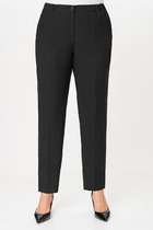 Брюки женские классические полуприлегающего силуэта с боковыми карманами спереди. Застежка брюк на тесьму молнию спереди и петлю и пуговицу по поясу. Пояс с эластичной резинкой сзади.