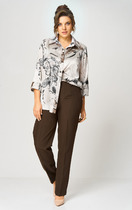 Эти брюки станут глотком свежего воздуха среди широких силуэтов и брюк палаццо. Их облегающий крой подчёркивает линию бедёр и тали, а затем изящно расклешается от колена.Такой фасон позволит скорректировать фигуру и подойдёт для строго дресс кода. Вертикальные линии по центру брючин вытягивают силуэт и удлиняют ноги. Застёжка классическая - молния и пуговица в цвет изделия.