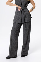 Брюки из эффектного бархата суперактуальной формы "подковы":  прямые, свободные по ноге и зауженные к низу. Застежка на молнию, пояс с резинкой по спинке. Спереди боковые карманы в швах, сзади - в шве притачивания кокеток.