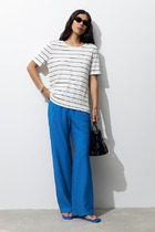 Такая модель придаст образу неповторимый летний шарм, добавив нотку игривости и романтичности. Они прекрасно сочетается как с лёгкой обувью на низком ходу, так и с туфлями на шпильке. Брюки отлично подойдут для прогулок по городу и пляжу, отдыха в кафе создавая образ свежести и элегантности.