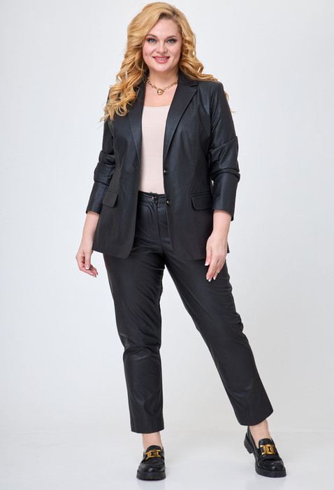 Брюки классические, прямые, слегка заужены к низу, по переду обработаны карманы с отрезным бочком, застежка на тесьму-молнию и 1 пуговицу. На задних половинках обработаны вытачки и имитация карманов в рамку с двумя обтачками, пояс в брюках притачной. По низу брюк в боковом шве есть небольшой разрез. Длина брюк от талии по боковому шву 97 см.