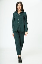 Брюки классические, из плотной текстильной ткани, прямые, слегка заужены к низу, заутюжены стрелки, по переду обработаны карманы с отрезным бочком, застежка на тесьму-молнию и 1 пуговицу. На задних половинках обработаны вытачки и имитация карманов в рамку с двумя обтачками, пояс в брюках притачной, без резинки.По низу брюк в боковом шве есть небольшой разрез. Длина брюк от талии по боковому шву 96 см.