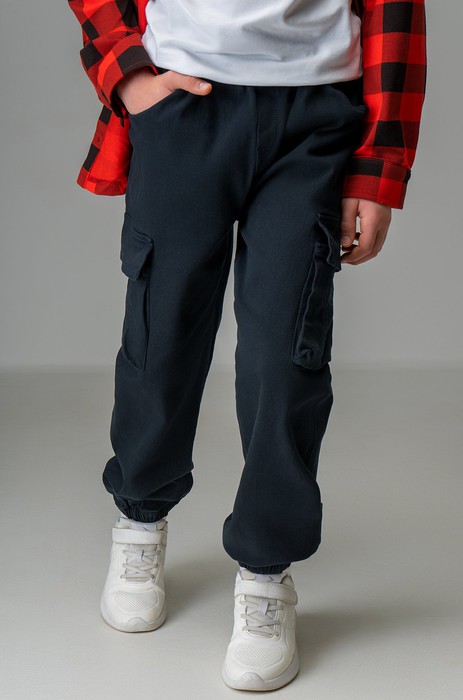 Тренды подростковой моды! Стильные брюки джоггеры для мальчиков и подростков выполнены из ткани габардин. Практичные брюки с большими накладными карманами идеальны на каждый день. Подростковые брюки карго свободного кроя, эластичный пояс регулируется шнурком, низ штанин собран на резинку.