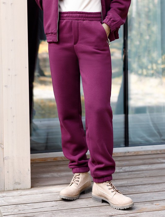 Эти уютные брюки пурпурного цвета созданы для вашего комфорта. Стильные спортивные штаны из натурального материала и правильного кроя подойдут для девушек и женщин любого размера, в том числе на плюс-сайз фигуру. Зауженные к низу брюки отлично вытянут силуэт и скроют недостатки за счет правильного кроя.