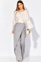Форма и силуэт Брюки заужены к низу, словно стремятся к утончённости, визуально вытягивая силуэт и придавая образу лёгкость. Они обнимают фигуру с деликатной уверенностью, не сковывая, а подчёркивая естественные линии тела. Стандартная посадка — золотая середина между комфортом и изяществом, идеально подходящая для повседневной динамики и вечерней непринуждённости.