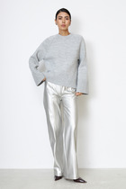 Брюки палаццо с притачным поясом из мягкой вельветовой ткани. Спереди застежка гульфик на молнии и петлей и пуговицей по поясу. По задней частям брюк вытачки. Пояс с резинкой в боковых частях. Брюки с заутюженными стрелками. Длина брюк с учетом пояса - 109 см.