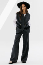 Брюки расширенные к низу, без застёжки. Верх брюк на резинке.