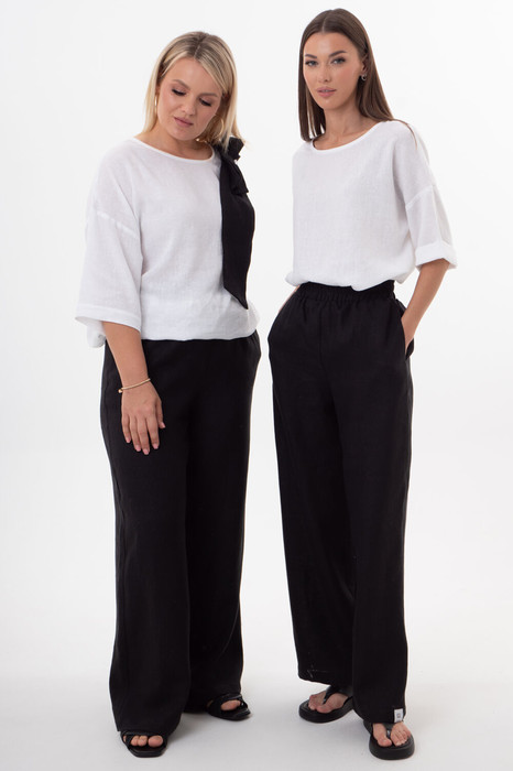 Универсальный дизайн подходит для офиса, прогулок или путешествий, легко комбинируется с базовыми футболками, рубашками и объемными кардиганами. Выбирайте брюки из льна с вискозой — ваш надежный спутник в мире современной моды, где ценится экологичность, комфорт и безупречное европейское качество.