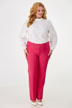 Брюки укороченные, на притачном поясе имеются шлевки. Застёжка на молнию и джинсовую пуговицу. По переду изделия расположены функциональные боковые карманы с декоративной отстрочкой, по задним половинкам карманы-обманки с листочкой. Низ изделия ассиметричный-передние половинки брюк короче, а задние половинки длиннее. Эти удобные брюки - отличный вариант для повседневной носки.