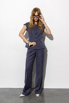 Брюки женские из гладкокрашеного тканого штапельного полотна, свободного покроя, удлиненные, с карманами в бокавых швах, на притачном поясе с эластичной тесьмой внутри.