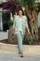 Прямые брюки-палаццо из тонкого льна с вискозой. Брюки на поясе. Функциональные прорезные карманы в рамку в боковых швах. Сзади прорезные карманы в рамку – обманки. По переду по две глубокие односторонние складки.